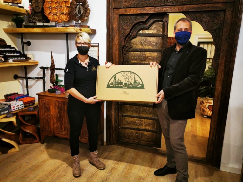 Auf der Ludwig-Würkert-Straße eröffnete „Kinaree“ das neue Ladengeschäft. Auch hier überbrachte der Oberbürgermeister seine Glückwünsche und sprach mit Alexandra und Robert Hähnel: "Wir freuen uns riesig, dass nun nach 1,5 Jahren Arbeit das Projekt Kinaree in Zschopau erfolgreich abgeschlossen und trotz der schwerwiegenden Auflagen mit einer wunderschönen und besucherreichen Eröffnung den Zschopauern und unseren Kunden aus Nah und Fern präsentiert werden konnte. Auch wenn die Investition in ein Ladengeschäft aktuell gerade unlogisch und nach einem wirtschaftlichen Schuss in den Ofen klingt, haben wir auf unser Herz gehört und das getan was wir am besten können: Einfach gemacht. Denn wir glauben an die Zukunft Zschopaus als Wirtschaftsstandort, als Ort für besondere Geschäfte und als zukünftiges Ausflugsziel für Touristen aus aller Welt."