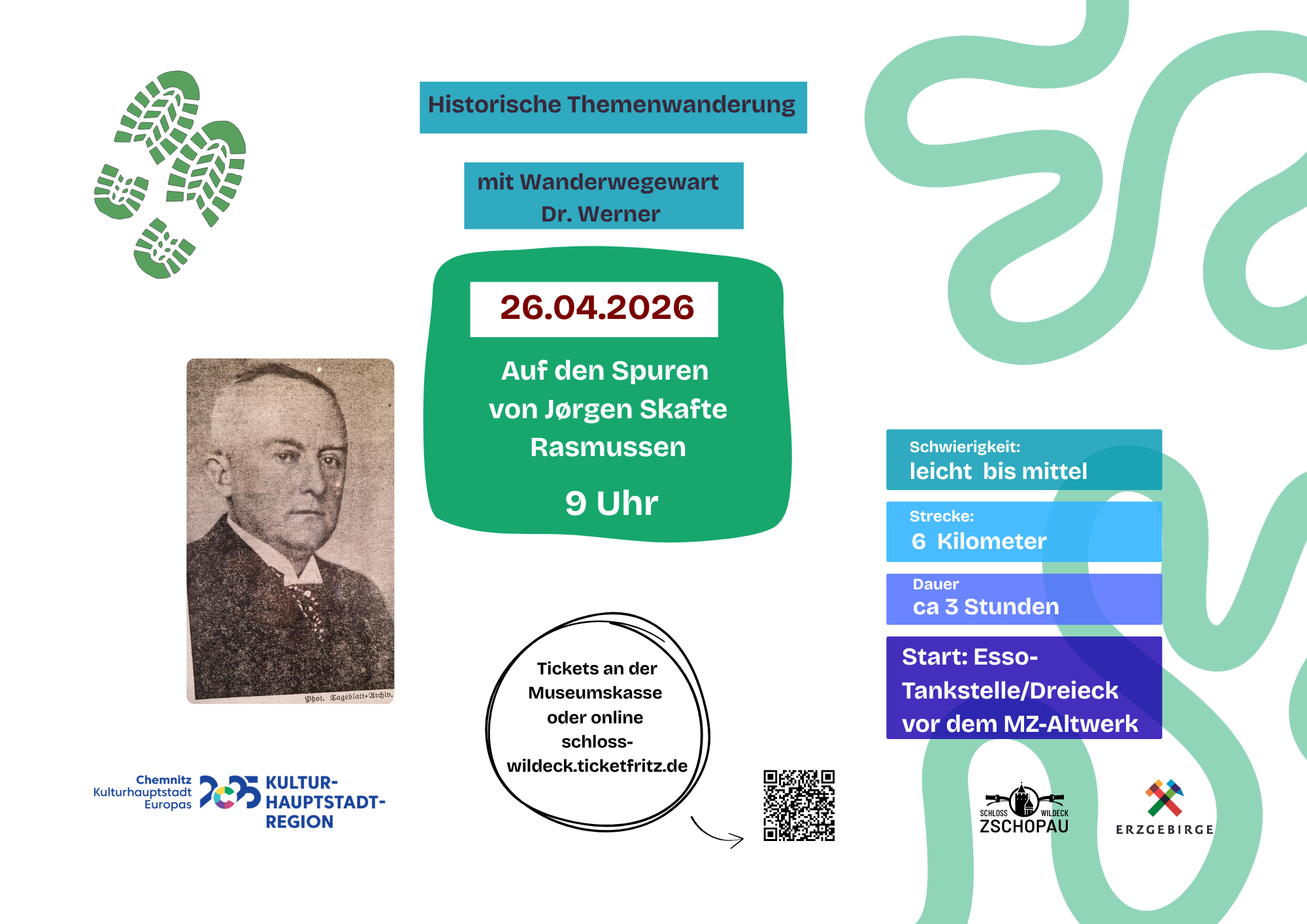 Historische Themenwanderung "Auf den Spuren von Jörgen Skafte Rasmussen" mit Wanderwegewart Dr. Werner.