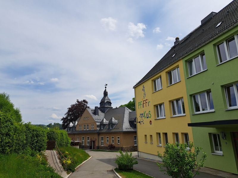 Die integrative Kindertagesstätte „Pfiffikus“ liegt im Umfeld des historischen Stadtkerns von Zschopau auf einem gut begrünten Gelände. In zwei Gebäuden bieten wir einen interessanten Lebens- und Aktionsraum für bis zu 200 Kindern in 11 Gruppen, vom Säuglingsalter bis zum Schuleintritt.