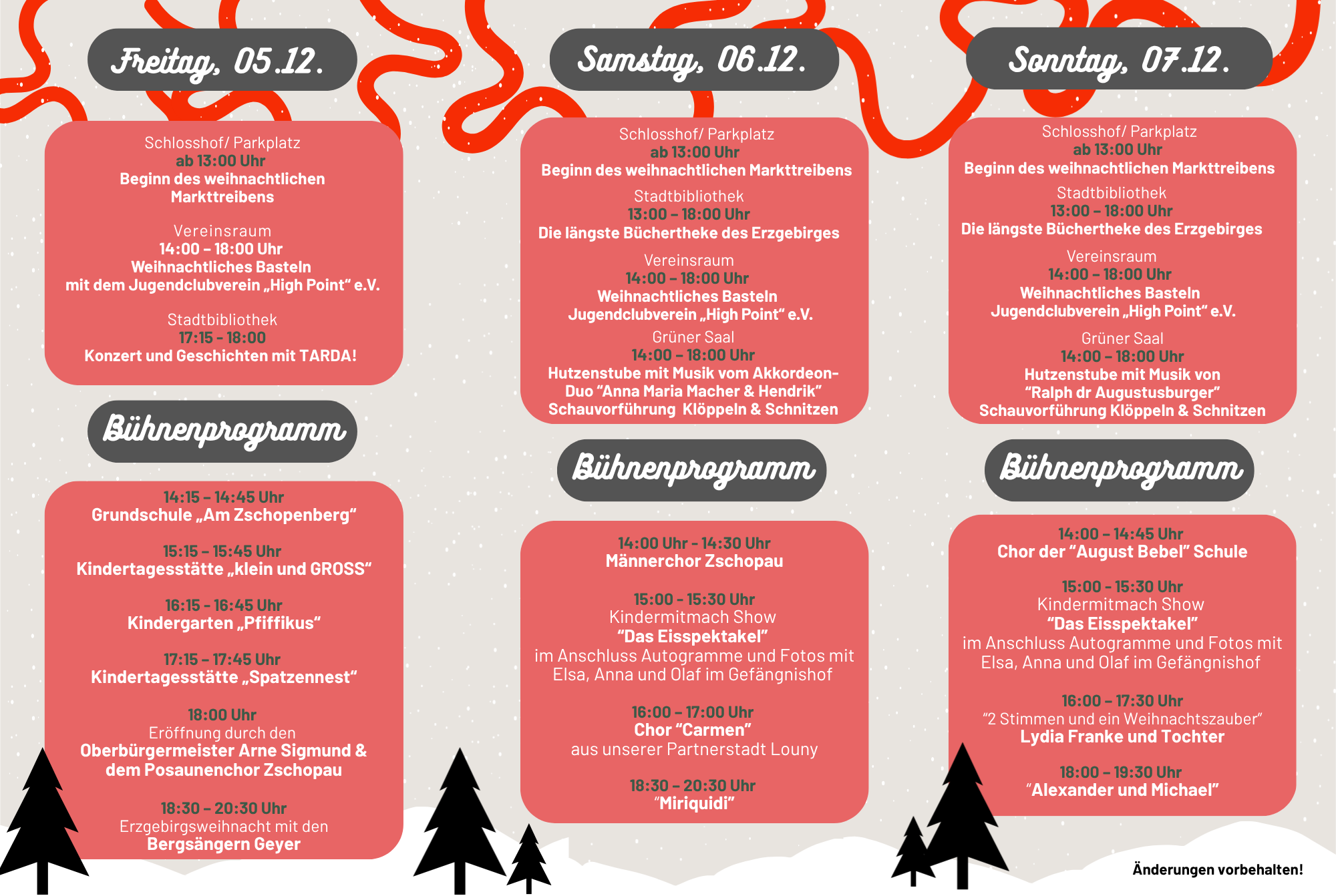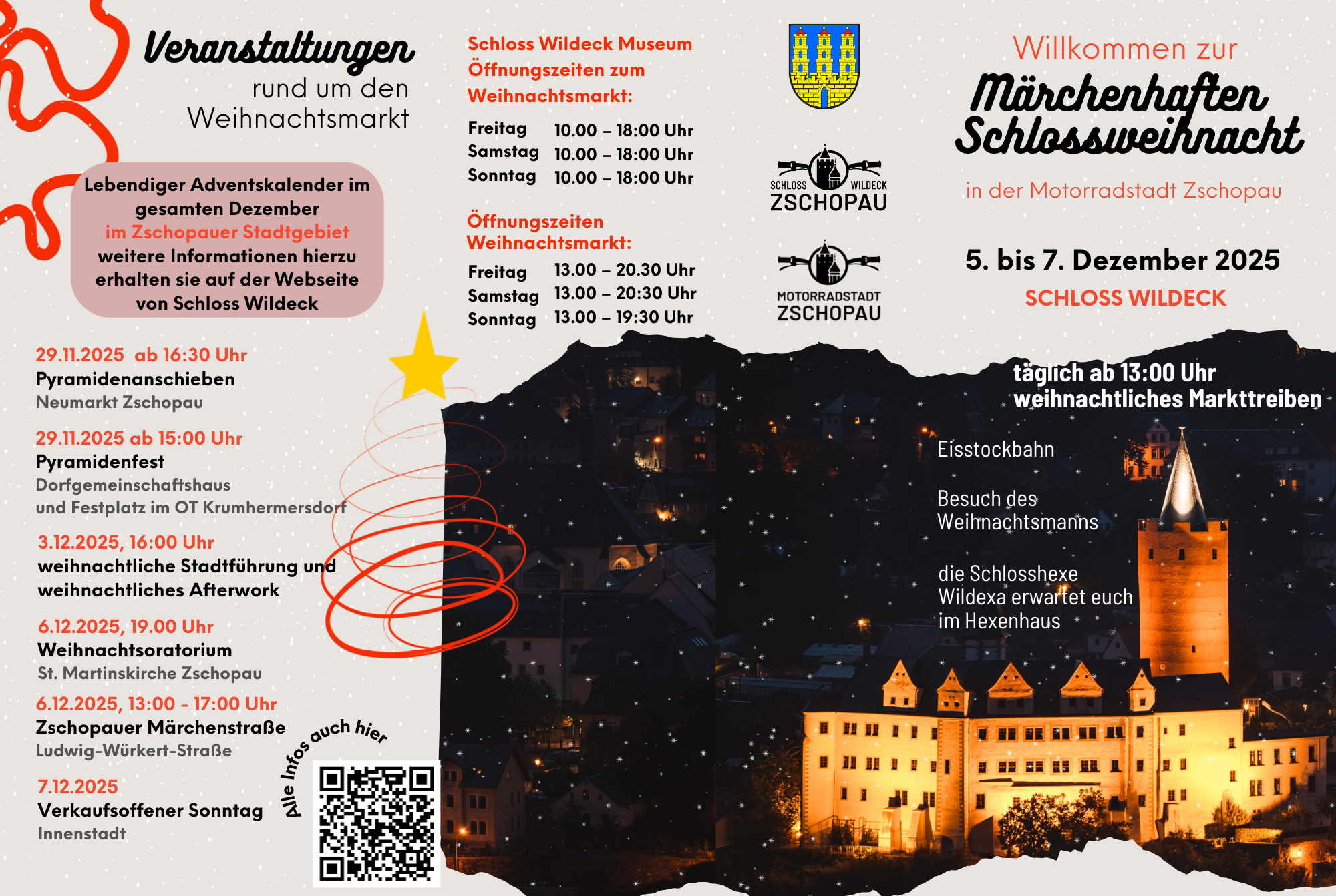 Vom 5. bis 7. Dezember 2025 lädt der Weihnachtsmarkt Zschopau zu drei stimmungsvollen Tagen voller Musik, Handwerk und Weihnachtszauber ein.