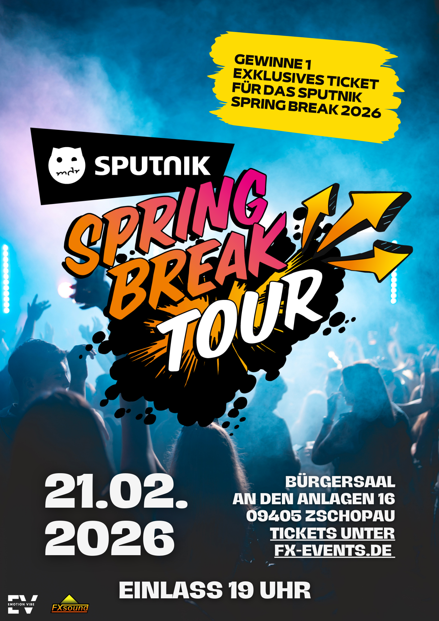 Aber das ist noch nicht alles! Jeder, der am Event teilnimmt, hat die Chance, ein exklusives Ticket für das Sputnik Spring Break Festival vom 22. bis 25. Mai 2026 auf der Halbinsel Pouch am Goitzschesee bei Bitterfeld zu gewinnen! Seid dabei und erlebt den ultimativen Frühjahrsurlaub voller Musik, Spaß und guter Laune!