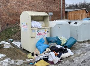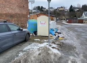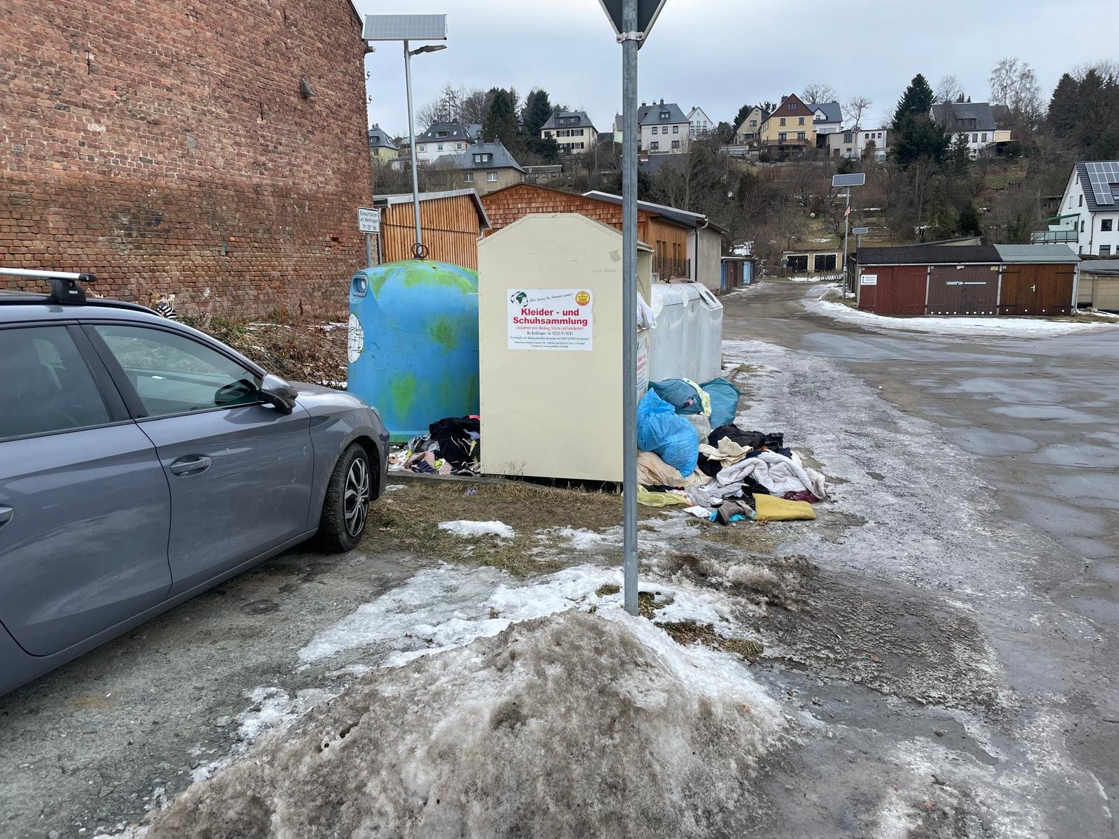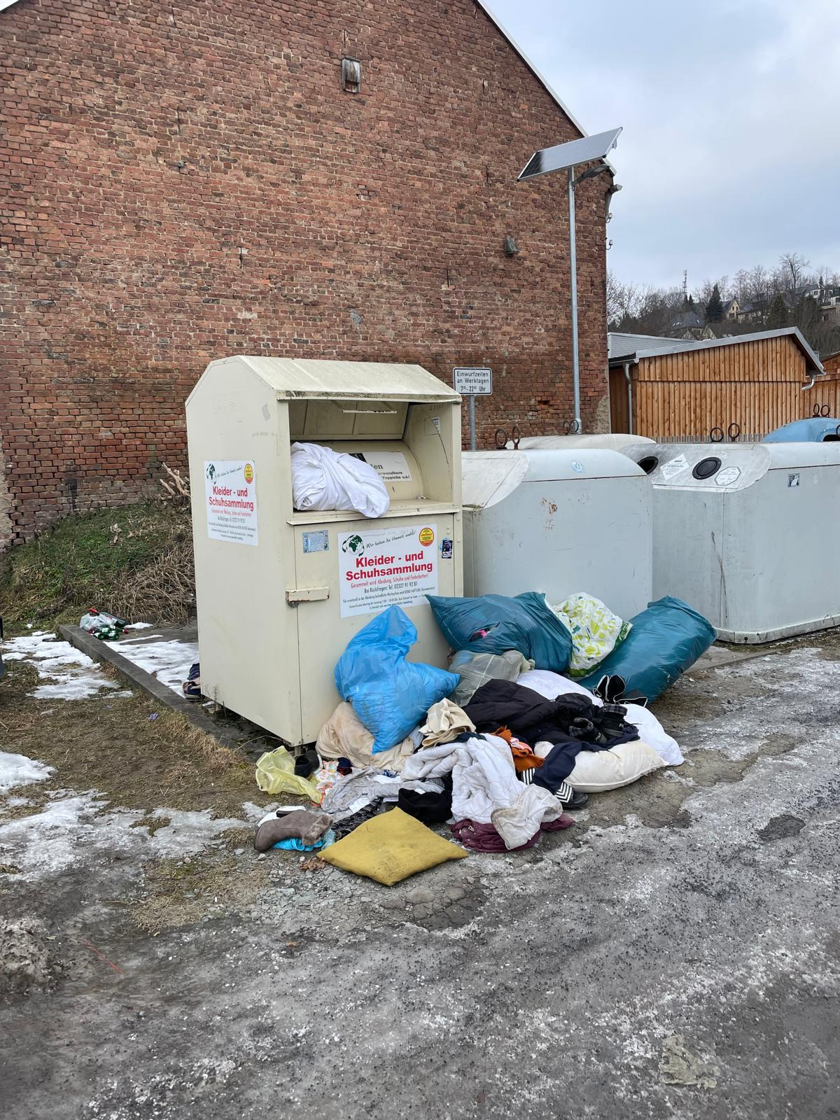 jetzt melden wir das dritte Mal eine Verunreinigung des "Altkleiderbehälters" !!