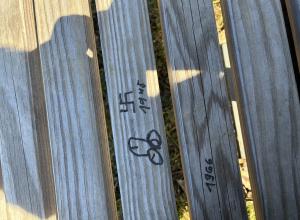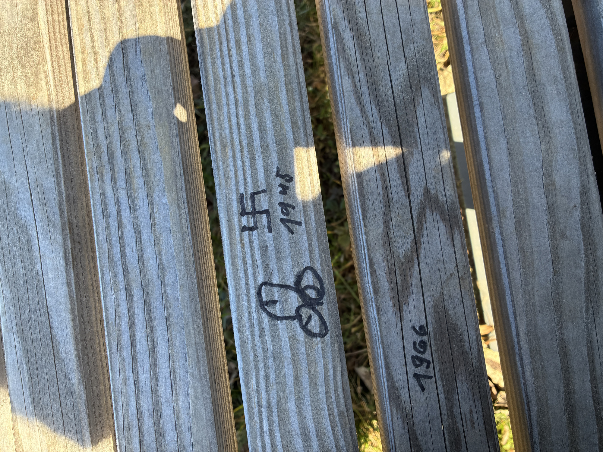 Auf der großen und neuen Sitzbank an der Grundschule Zschopenberg bzw. am Skihang wurden Schmierereien auf der Sitzfläche hinterlassenKarte